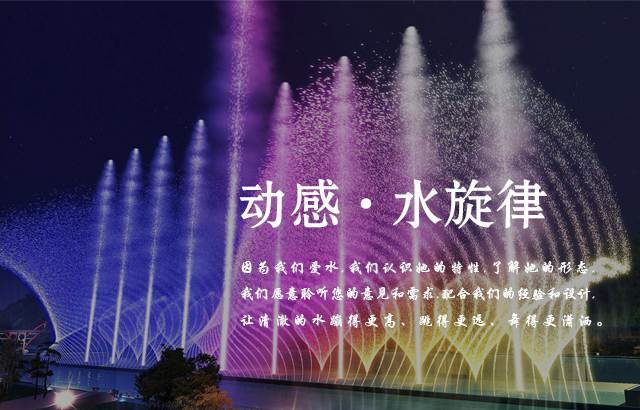 云南龍諾噴泉 — 專(zhuān)業(yè)打造融入地方特色的創(chuàng)意水景噴泉設(shè)計(jì)工程,主要從事園林景觀(guān)工程、大型水秀水景工程、昆明音樂(lè)噴泉工程、程控噴泉工程、冷霧造景、水幕電影、數(shù)碼水簾、環(huán)保工程、燈光亮化工程的設(shè)計(jì)與施工。始終堅(jiān)持質(zhì)量為先的工程理念,提供全方位的服務(wù)支撐,堅(jiān)持做充滿(mǎn)藝術(shù)觀(guān)感的高品質(zhì)噴泉水景。